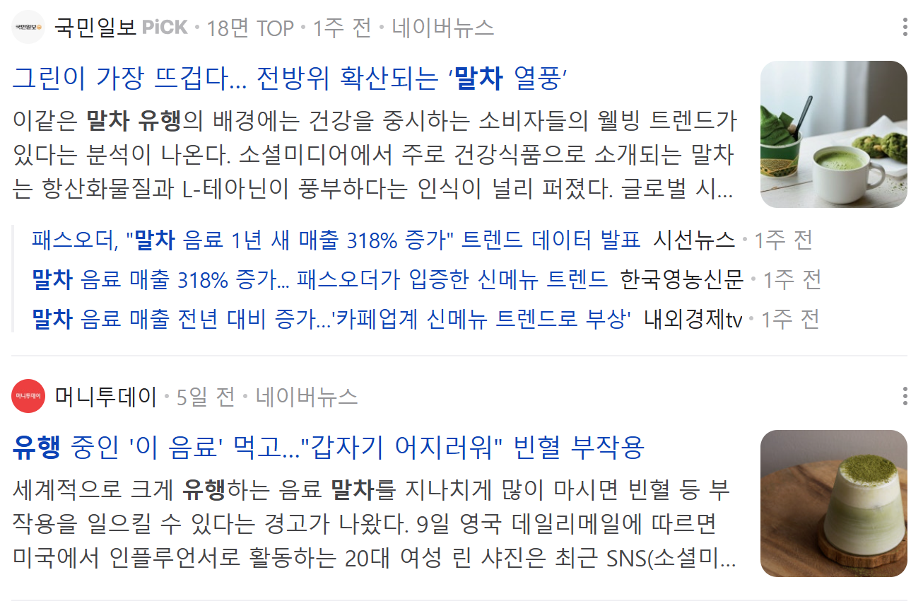 런닝을 하고 카페에 앉아서 말차를 먹는 사진이 각종sns에 돌기시작하고 너도나도 런닝 후에 말차를 마시는
