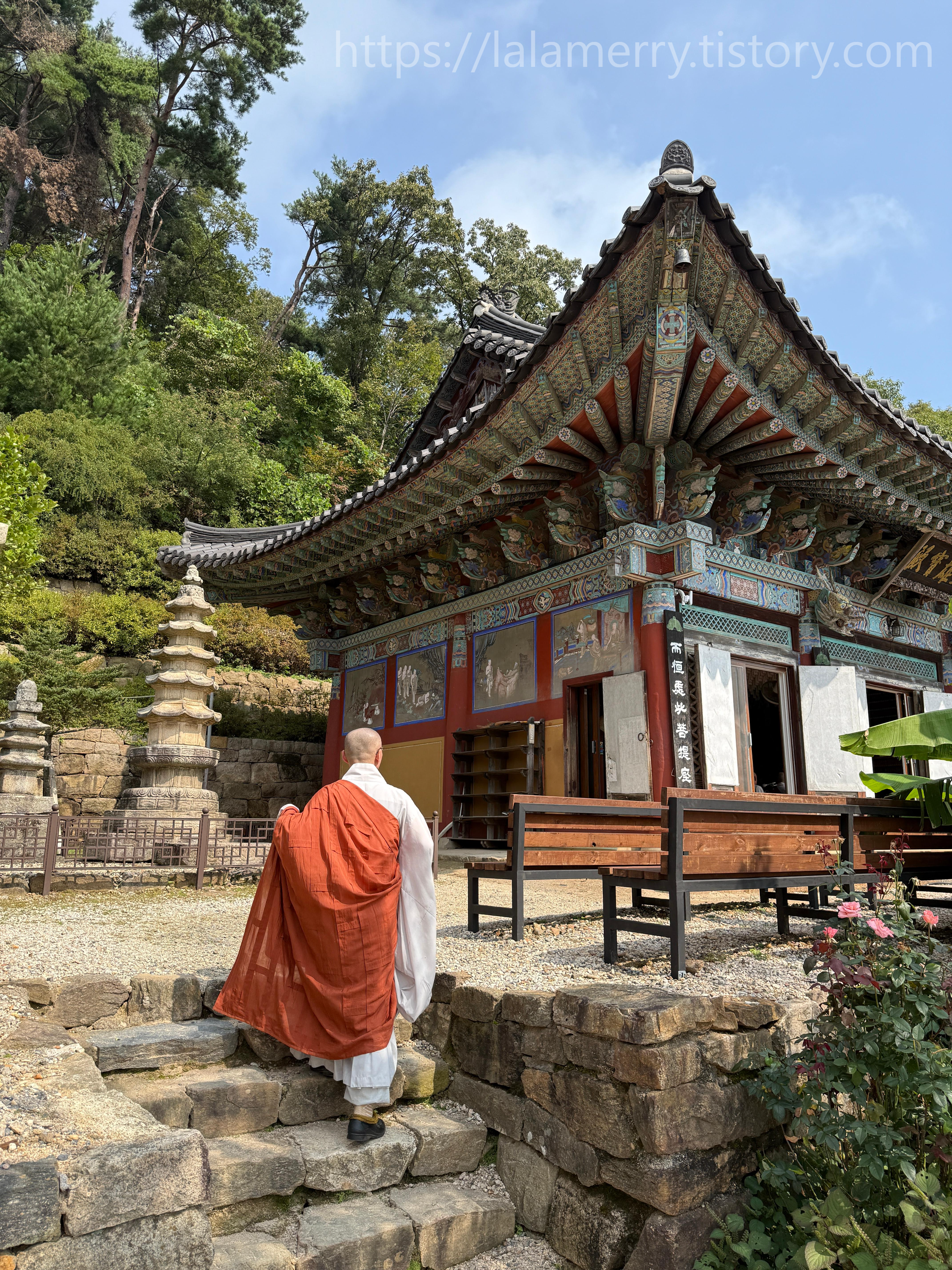 사찰 특유의 고요한 분위기 속에서 천천히 걸으며 사색하는 시간이 큰 즐길거리예요.