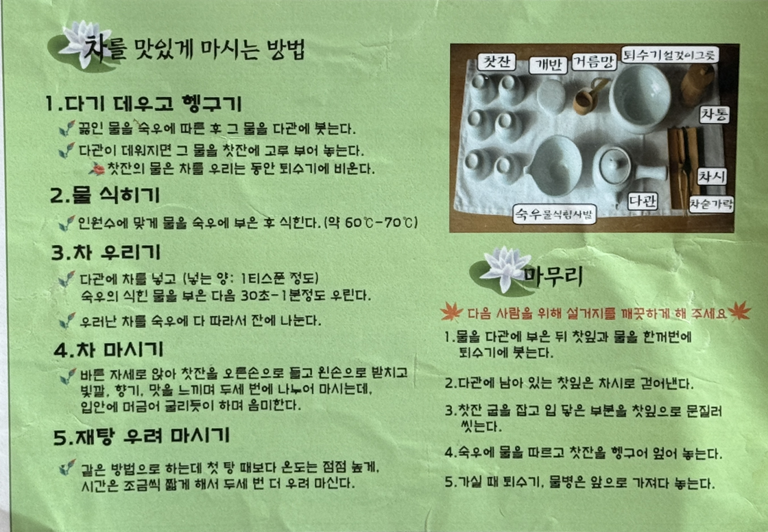 방문하기전 다도시간이 정해져있다고 했는데