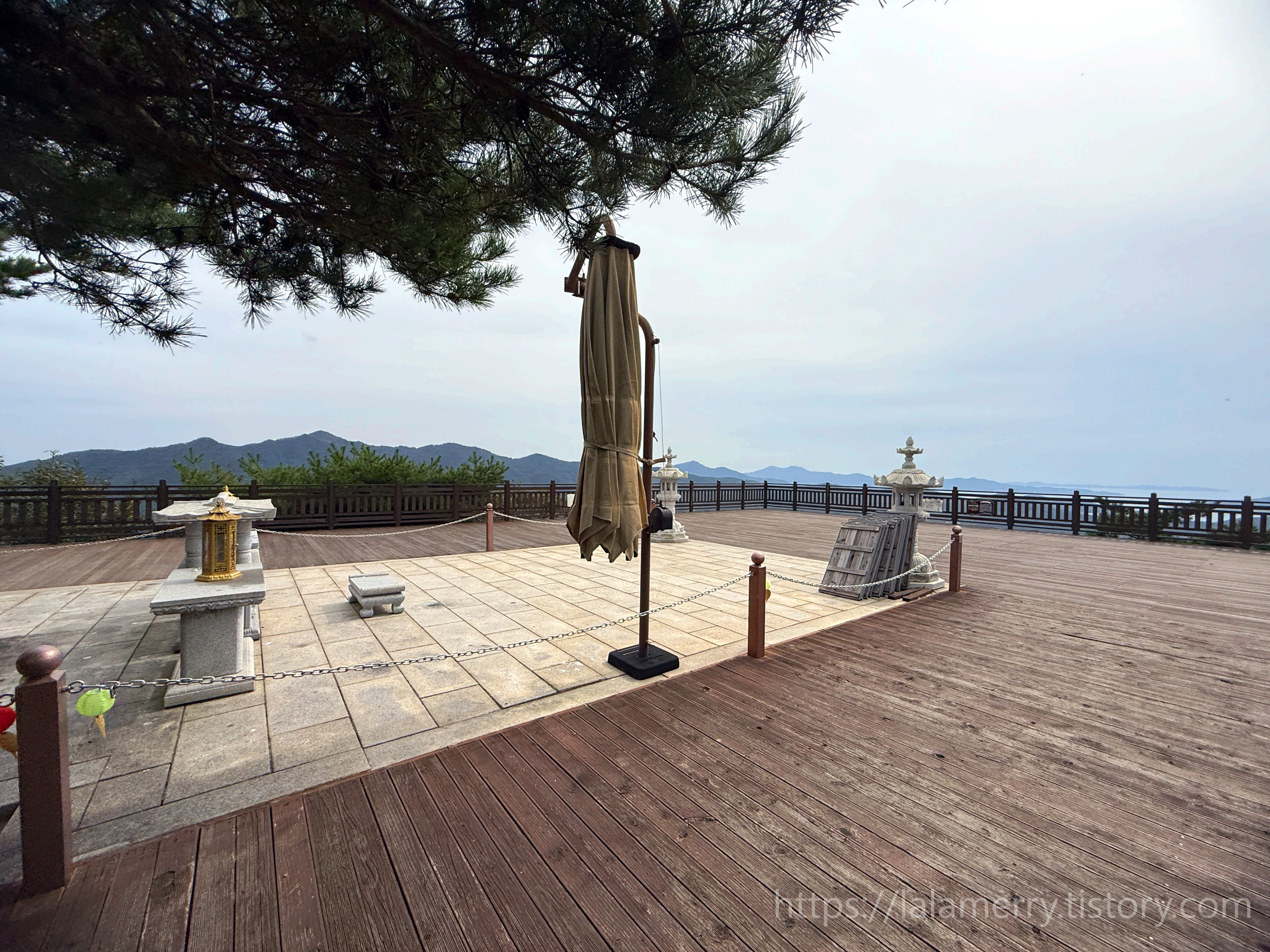 이곳은 사찰의 고요함과 서해의 황홀한 석양을