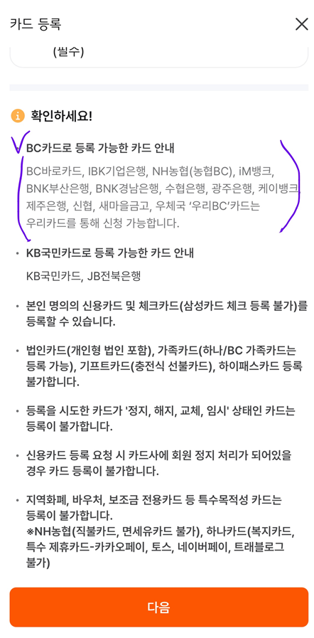 4. 카드등록시 유의사항= BC카드 소지자는 등록이 가능한카드와 불가능한 카드를 확인하세요