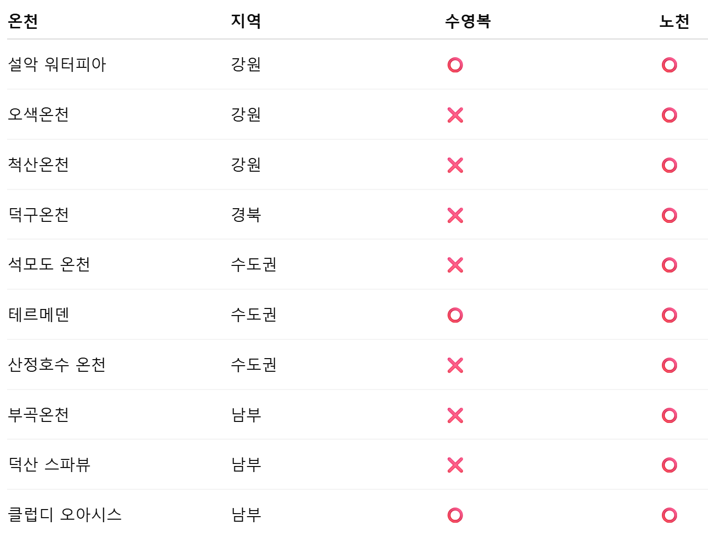 수영복 착용: ❌ 불필요 (시설별 상이)